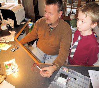 Peter has been taking an electronics course, which sends him projects in the mail.